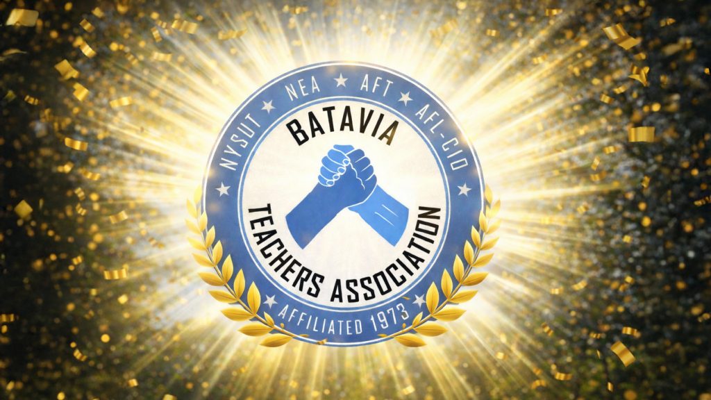 The Batavia Teachers’ Association welcomes you to its official home page. In our mission to better serve our members, as well as the children and families of Batavia, we hope to use this site to share helpful resources and updates for our members and the community. Here, you will find important documents, such as our current contract, access to a shared drive that provides access to important member-only resources, updates on the good work our members are doing for the Batavia community, and much more. You will also find access to an archive of press releases shared with local and regional media, posts such as this with updates that are important but don’t warrant a media blast, and soon, digital access to our Association newsletter.